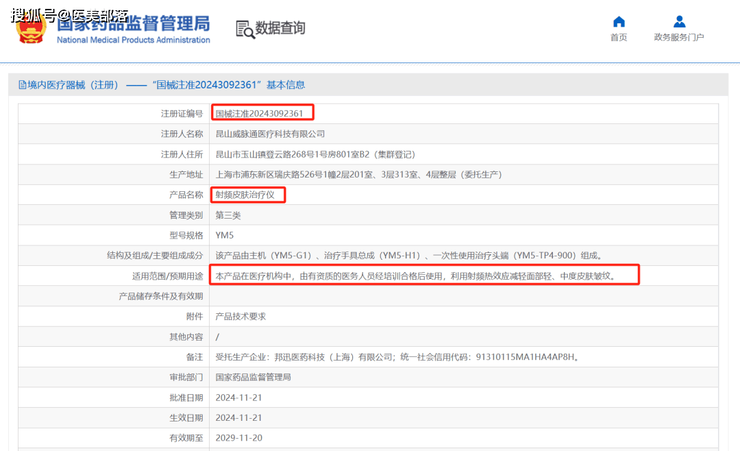 2024年11月21日,威脉医疗旗下的高能单极射频“皮肤治疗仪”YOUMAGIC®正式获批,注册证号:国械注准20243092361。该产品用于对面部松垂皱纹的非侵入性治疗,能够减轻面部轻、中度皮肤皱纹,紧致、提升皮肤组织,具有无创性、无恢复期、个性化、更高效舒适等多重治疗优势。