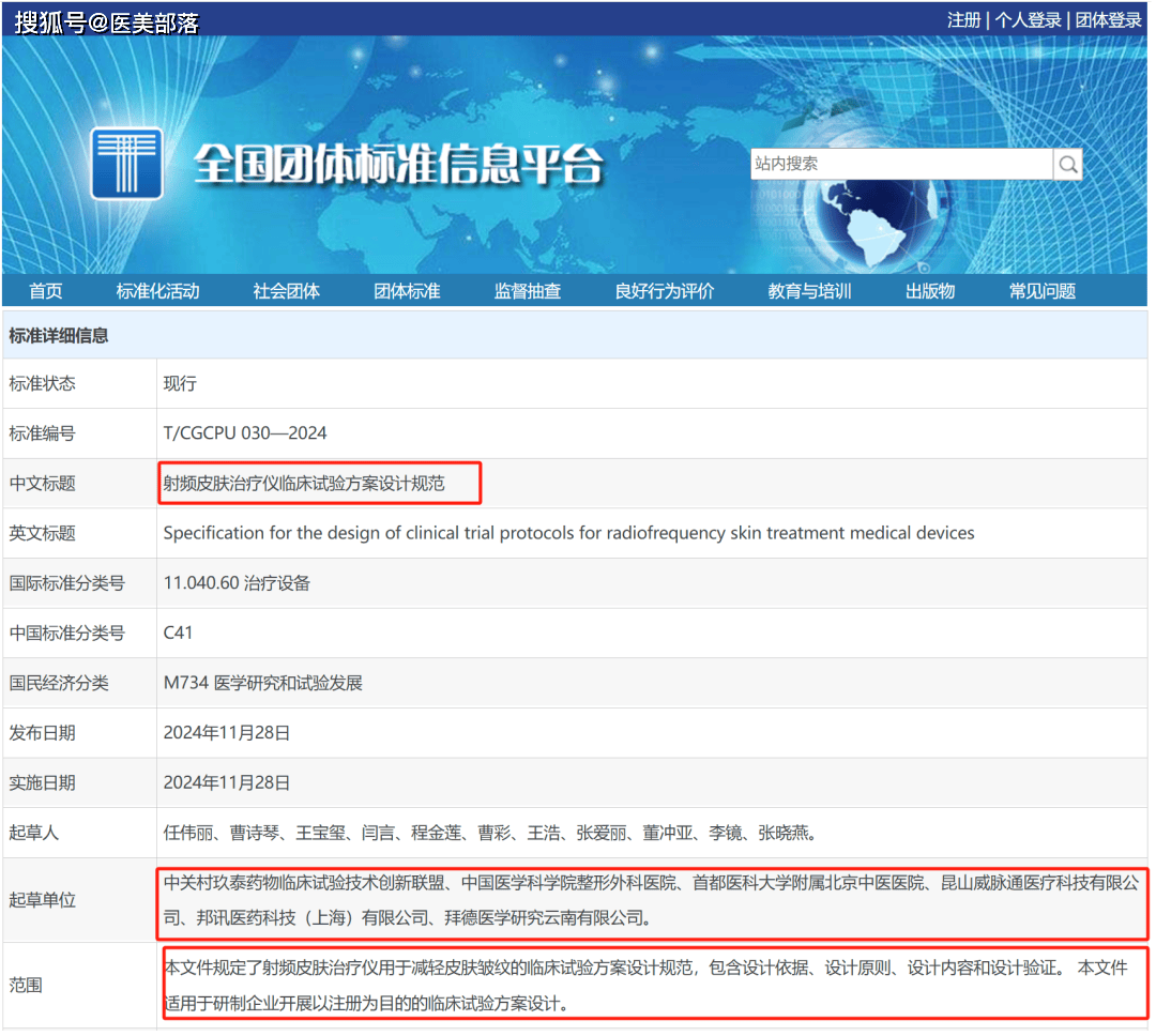 2024年11月28日,威脉医疗参与起草制定的《射频皮肤治疗仪临床试验方案设计规范》团体标准正式发布实施,标准标号为T/CGCPU 030-2024。此团体标准作为国内首个射频临床团体标准,其发布标志着我国射频医疗行业向合规化、标准化迈出了重要一步。
