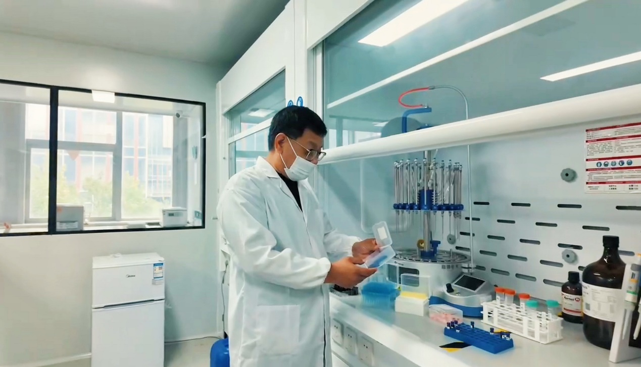 (图为:中国纯植物提取硒第一人史卫东教授在实验室)