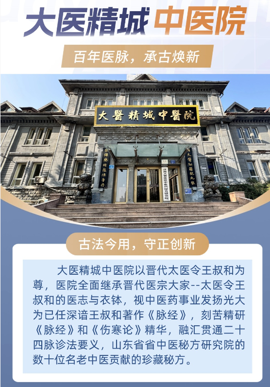 在济南这座兼具历史底蕴与现代活力的城市里,有一座特殊的建筑 —— 济南市市中区经一路 2 号的大医精城中医院。它不仅是山东省重点文物保护建筑,承载着百年岁月的记忆,更是一座沉淀着中医精髓的 “健康驿站”,以千年中医智慧为根基,用坚守与传承守护着百姓的身心健康。