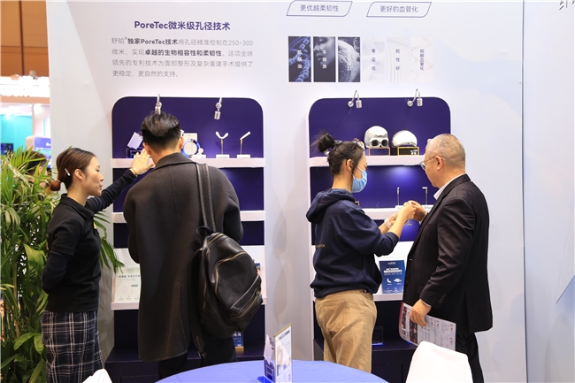展会期间,舒铂展位人头攒动,吸引了包括上海九院在内的众多权威专家驻足交流。现场围绕“颌面材料在不同解剖层次的应用技巧”、“鼻整形分层支架搭建逻辑”以及“新材料在复杂修复中的潜力”等议题展开了热烈讨论。